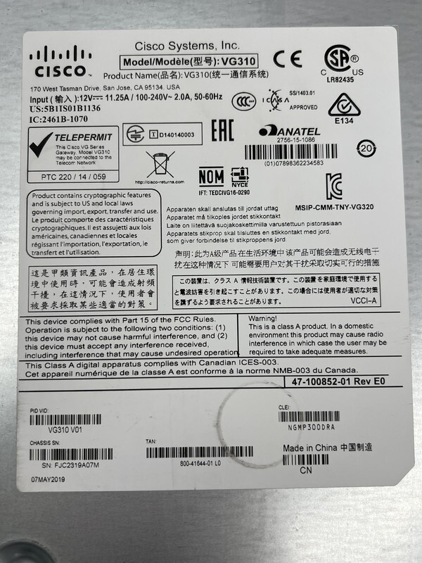 Cisco VG310 High Density 24-Port Analog Voice Gateway VoIP V01 This item is new and comes without original packaging as shown.