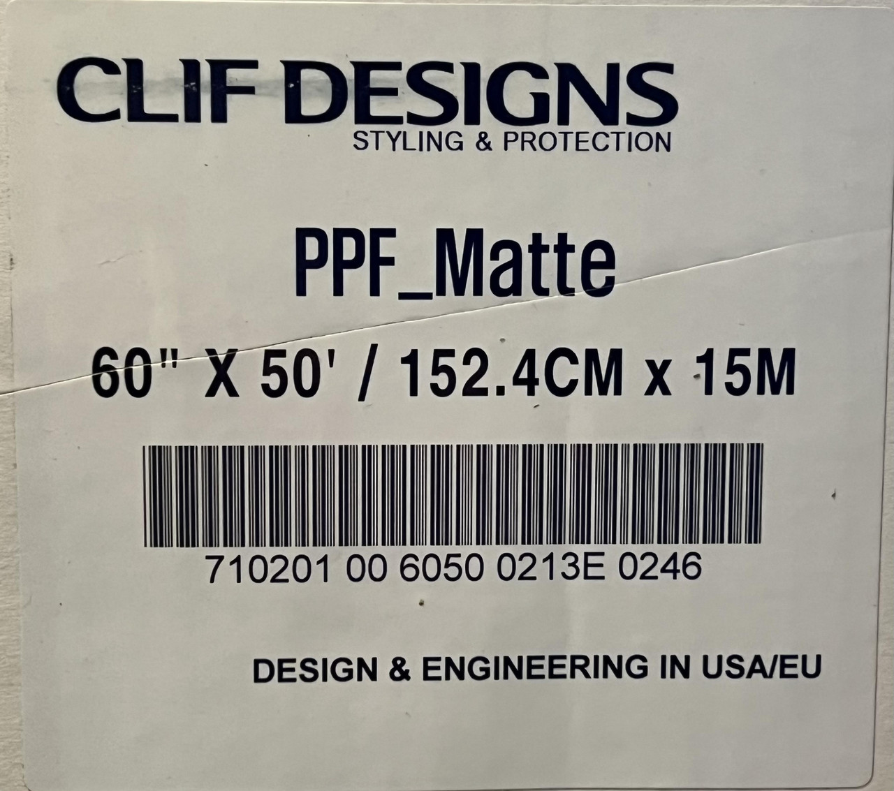 CLIF DESIGNS STYLING AND PROTECTION PPF MATTE 60"X50' CLEAR WRAP 710201 This item is new as shown.