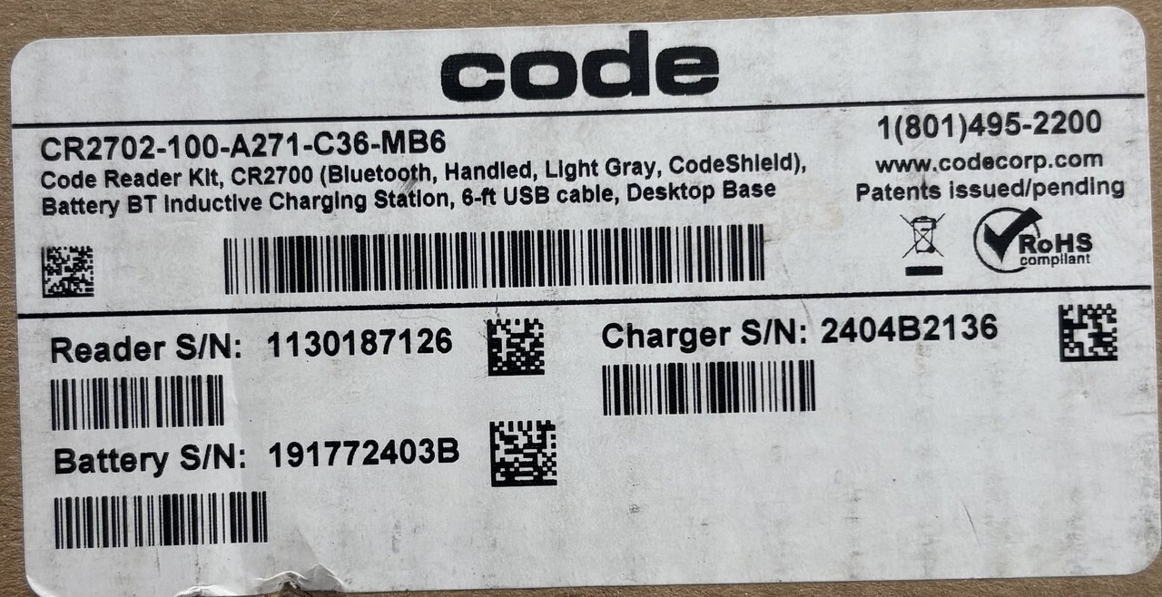 Code Cr2700 Bluetooth Barcode Scanner Reader Kit This item is new and internally sealed in a freight worn box.