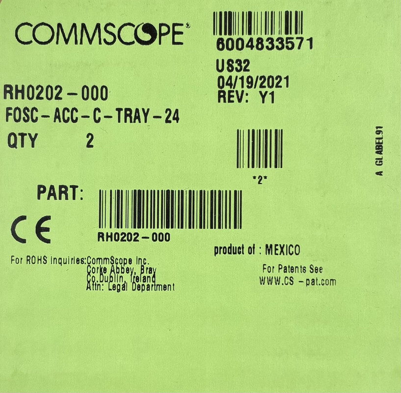 LOT OF 20 COMMSCOPE RH0202-000 FOSC FIBER OPTIC SPLICE TRAYS FOSC-ACC-C-TRAY-24 These items are new as shown.