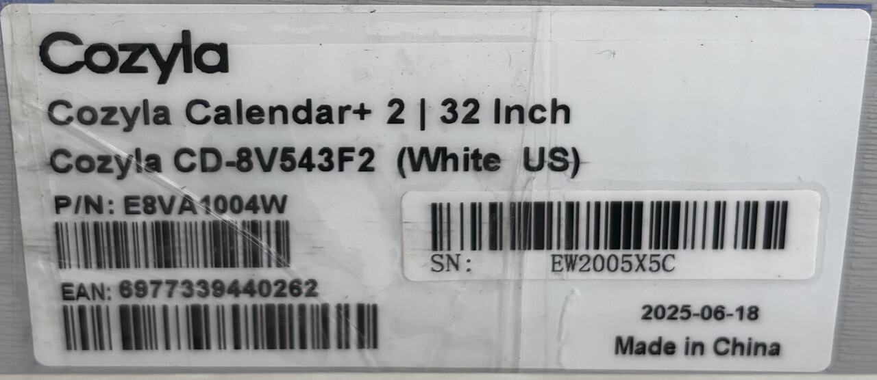 Cozyla Cd-8v543f2 32 Lcd Touchscreen Family Calendar Plus 2" White This item is in open box condition as shown.