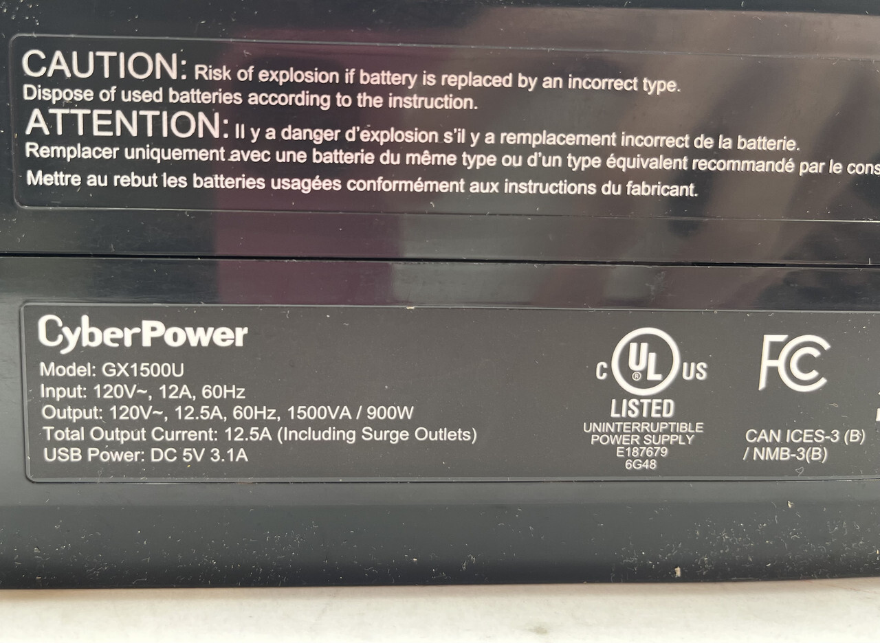 CyberPower 1500va SINE WAVE BATTERY BACK-UP SYSTEM (BLACK) GX1500U This item is new without original box as shown.