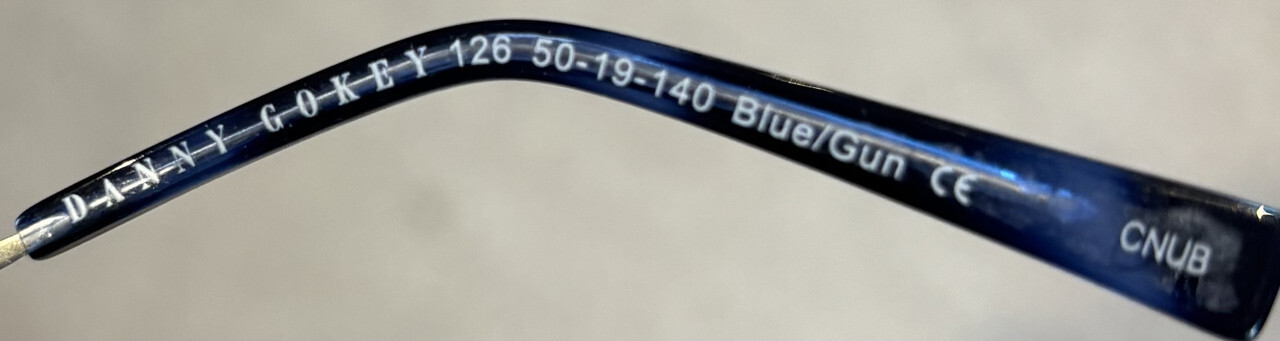 Danny Gokey 126 50-19-140 Blue/Gun Metal Mens Eyeglass Frames This item is new with tags and comes without a case or accessories as shown.