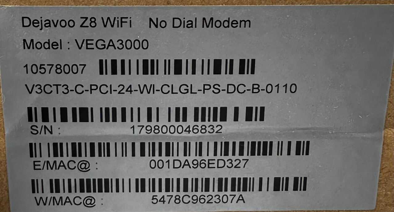 DEJAVOO VEGA3000 WIFI Z8 V3CT3 CREDIT CARD MOBILE PAYMENT TERMINAL W/PS This item is brand new in an opened box as shown.