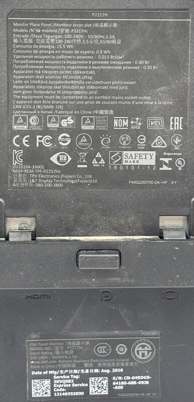 Dell P2217H P2217Hc 22 Inch Computer Monitor This item is used and comes without stand or accessories as shown.