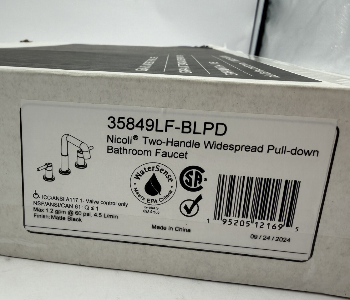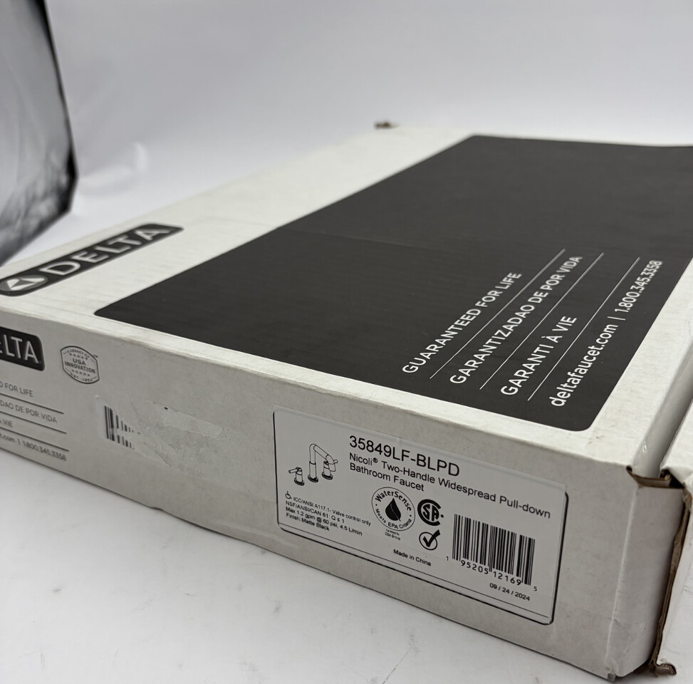 Delta Nicoli Two Handle Pull-down Bathroom Faucet 35849LF-BLPD Matte Black This item is new in an open box as shown.
