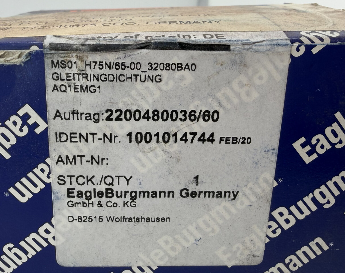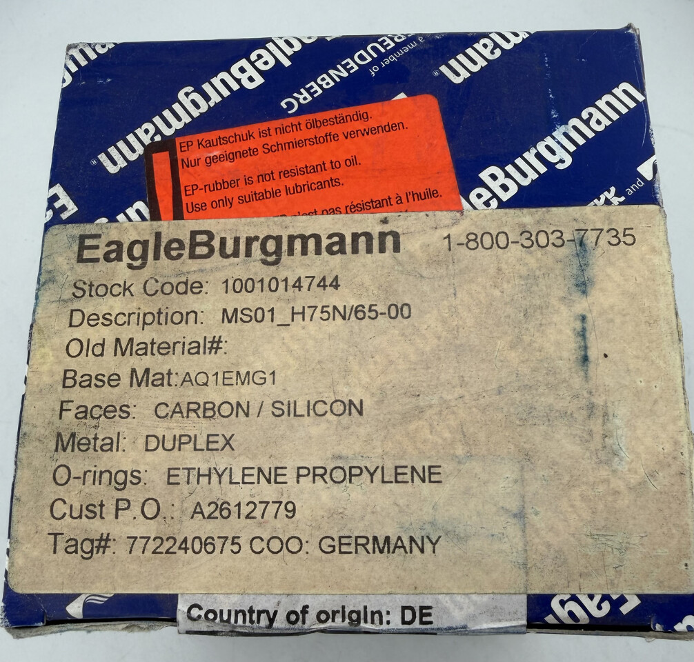 Eagle Burgmann Geniune 1001014744 mechanical Seal MS01_H75N/65-00 This item is sealed in original (freight worn) box as shown.
