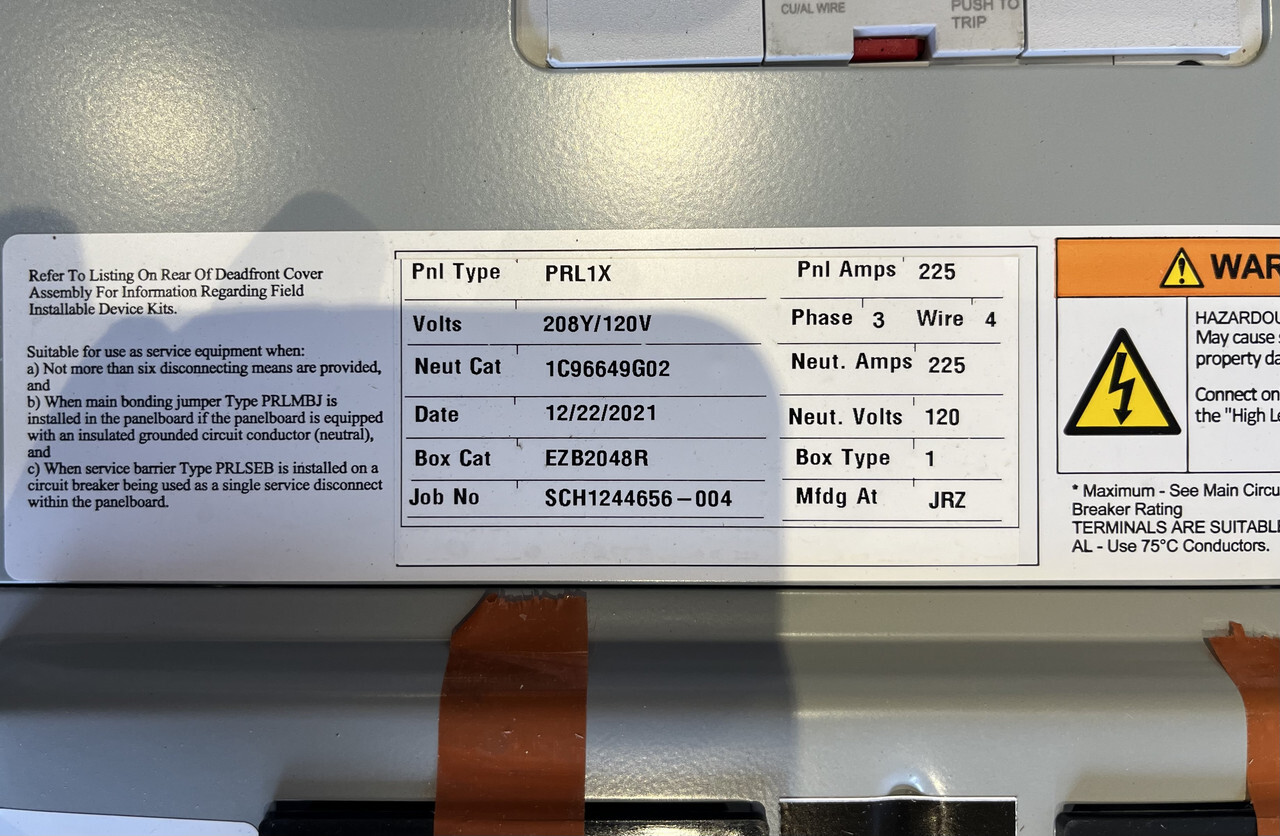 EATON POW-R-LINE XPERT PRL1X PANELBOARD WITH PDD2 BREAKER This item is new in freight worn box as shown (Includes PDD23F0225TFFL PDD2 225A BREAKER)