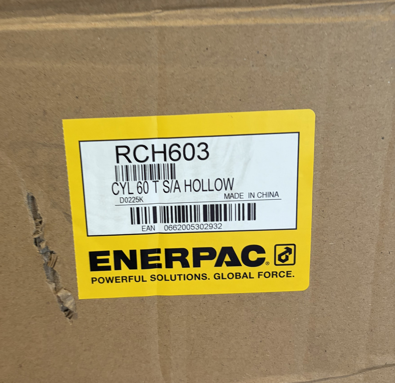 Enerpac RCH603 63.6 ton Capacity 3.00 Stroke Hollow Plunger Hydraulic Cylinder This item is new and comes on a pallet in a freight worn box as shown.