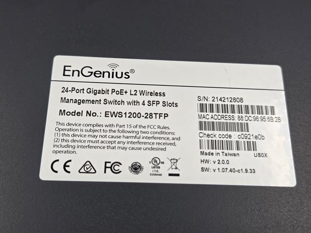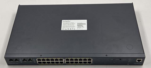 ENGENIUS EWS1200-28TFP 24-PORT POE+ L2 WIRELESS MANAGEMENT SWITCH W/ 4 SFP SLOTS This item is used and comes in a freightworn box as shown
