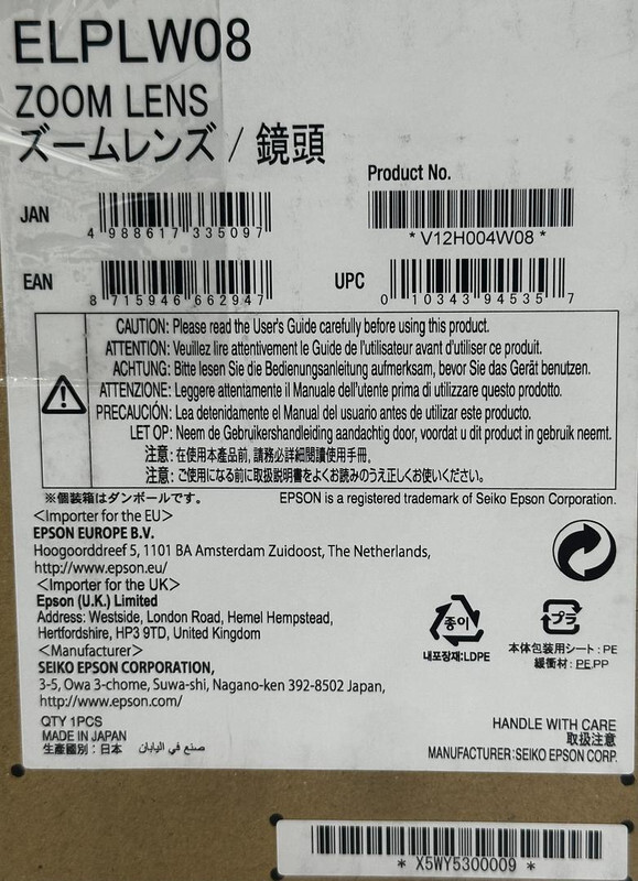 Epson Elplw08 Wide-throw Zoom Lens For Eb-pu2010 And Eb-pu2100/pu2200 projectors This item is new in an opened box as shwon.