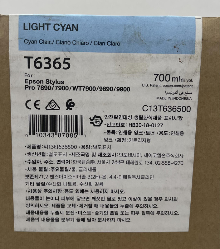 EPSON EPSON STYLUS PRO T6365 CARTRIDGE LIGHT CYAN T6365 700ML This item is new and unopened as shown