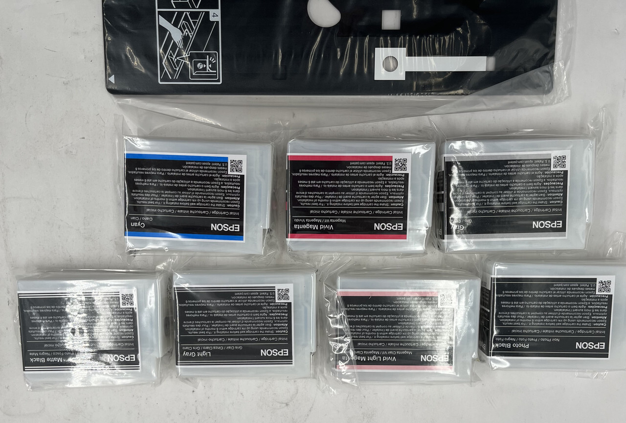 EPSON GENUINE SURECOLOR P700/P900 SET 7 STARTER INK These items are sealed in a freight worn box as shown