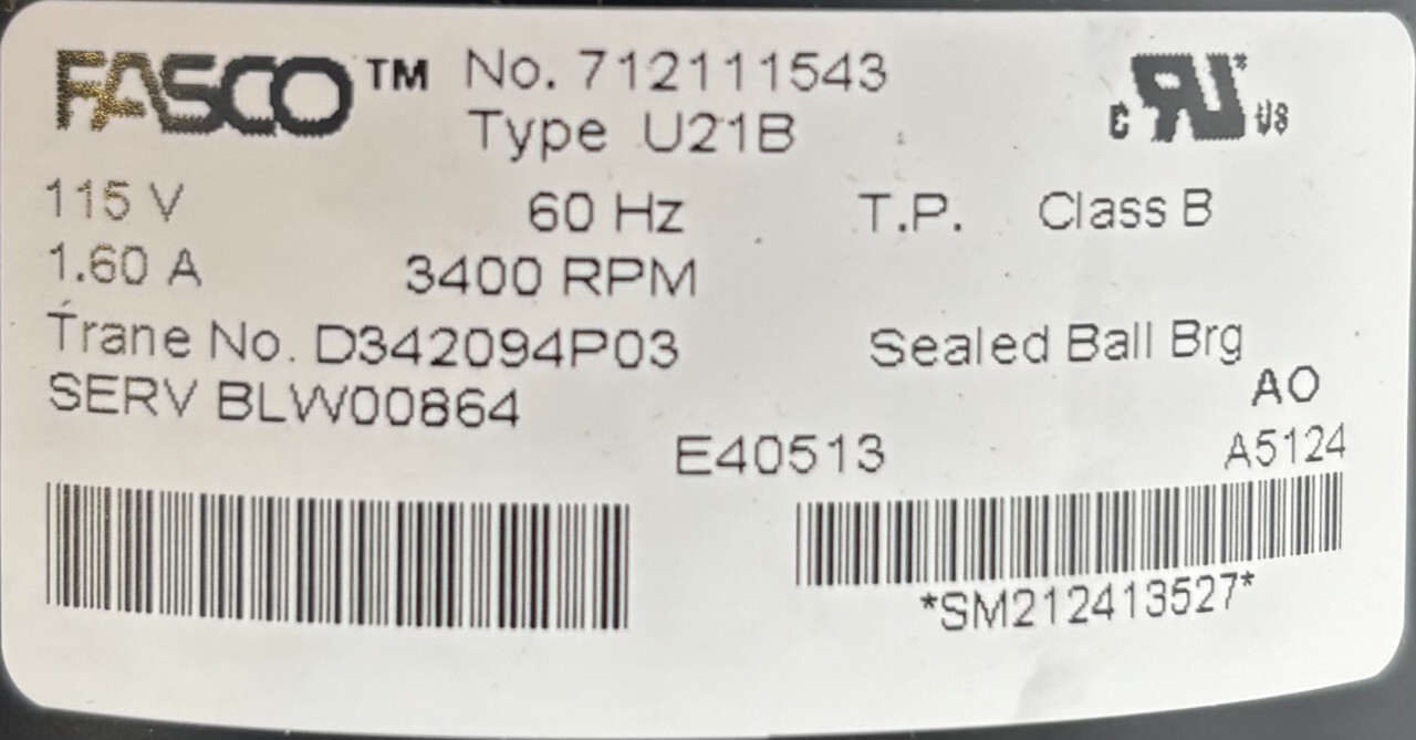Fasco U21B BLW00864 115V 60Hz Class B Furnace Draft Inducer Blower This item is new as shown.
