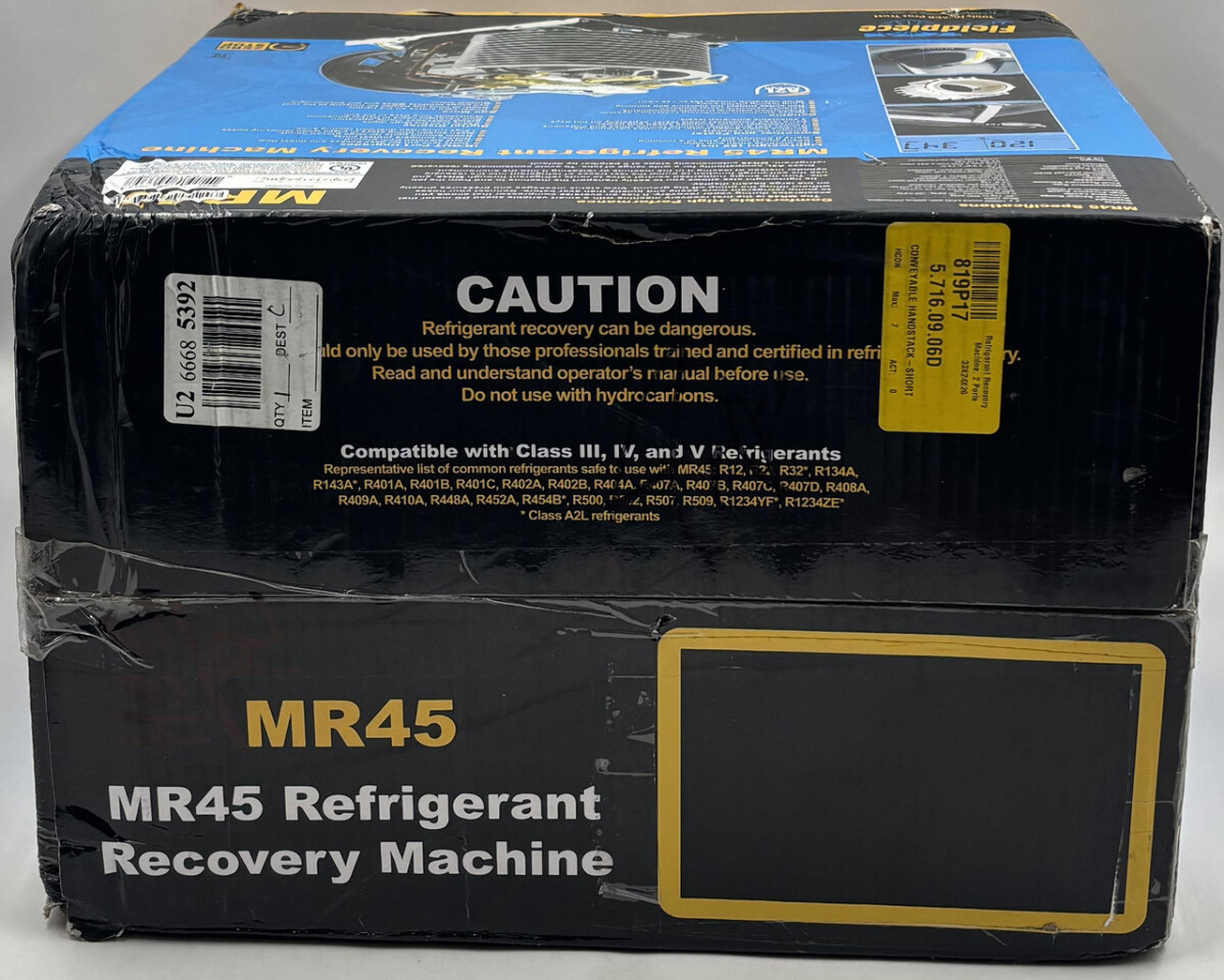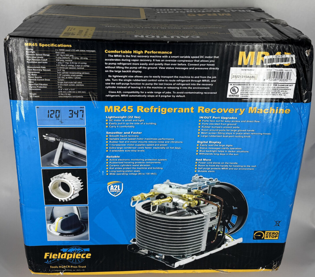 FIELDPIECE MR45 REFRIGERANT RECOVERY MACHINE A2L COMPATIBLE 1HP VARIABLE DC MOTOR This item is new and sealed as shown.