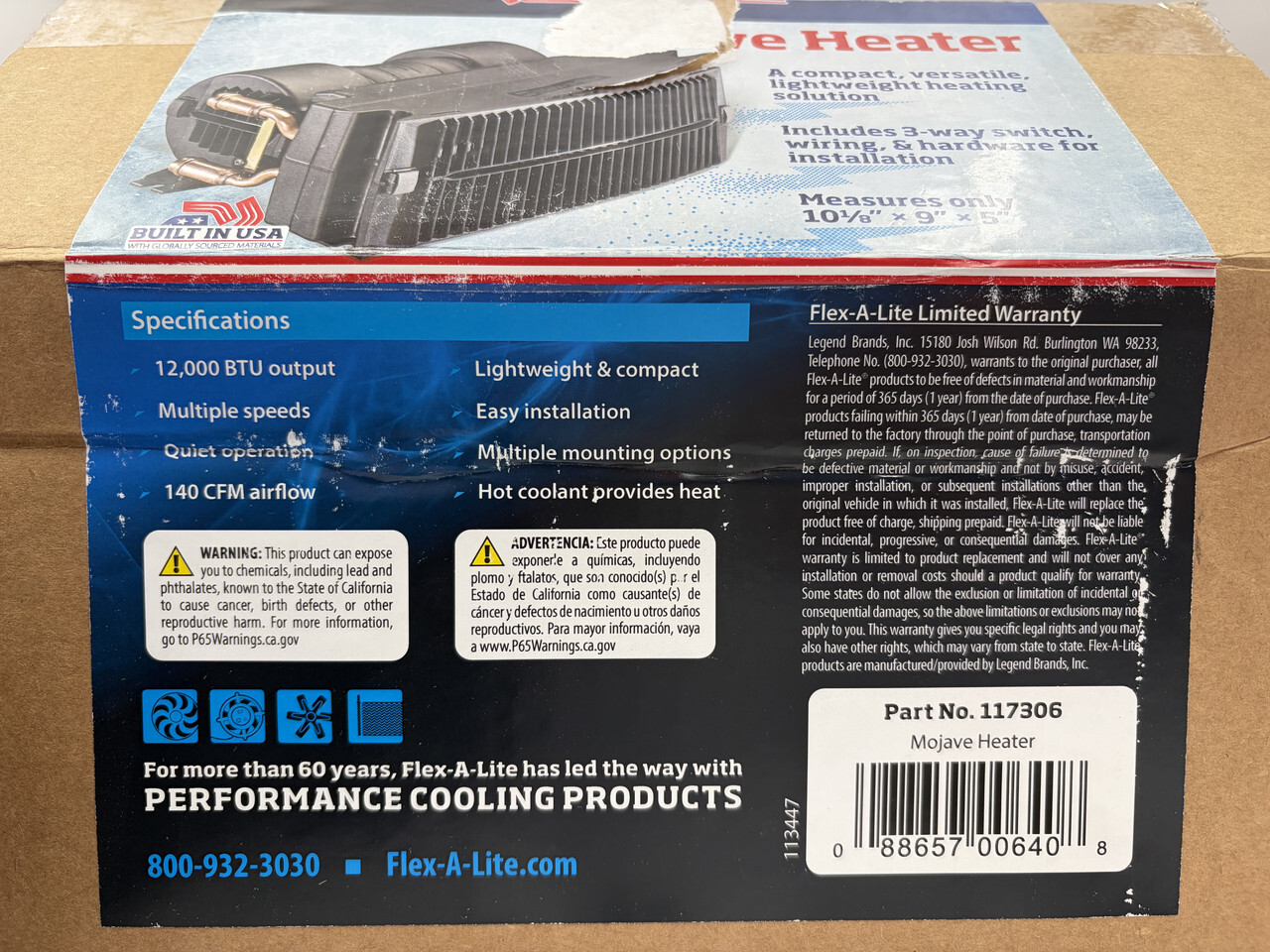 Flex-A-Lite Mojave Heater Unit HotRods for Trucks and Care 117306 10.12x9.5" This item is in excellent condition as shown.