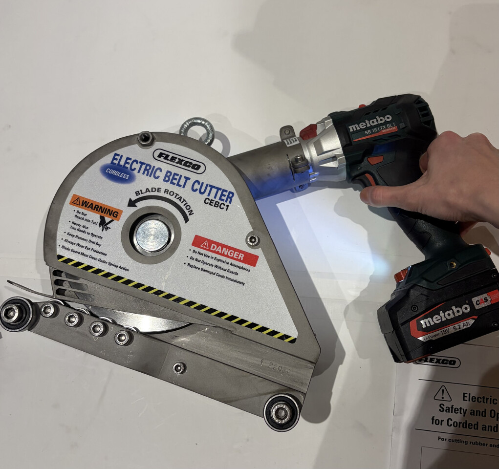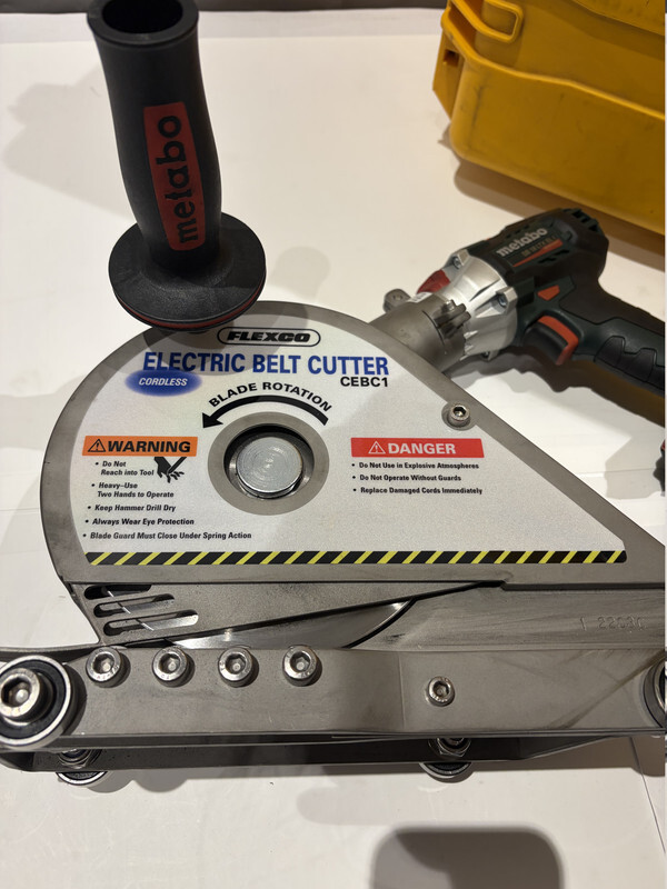 Flexco CEBC1 Cordless Conveyor Belt Cutter w/ Metabo SB 18 Hammer Drill 30018 This item is in excellent condition as shown. Battery pack included, comes without battery charger.