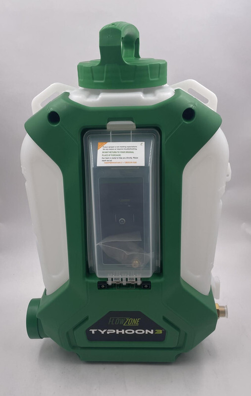 FLOWZONE TYPHOON3 LITHIUM-ION BATTERY-POWERED BACKPACK SPRAYER 4 GALLON This item is new in an opened box as shown.