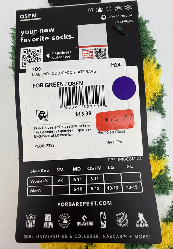 FORBAREFEET Apparel 109 Diamond Colorado State Rams Fuzzy Socks OSFM These socks are in new condition as shown.