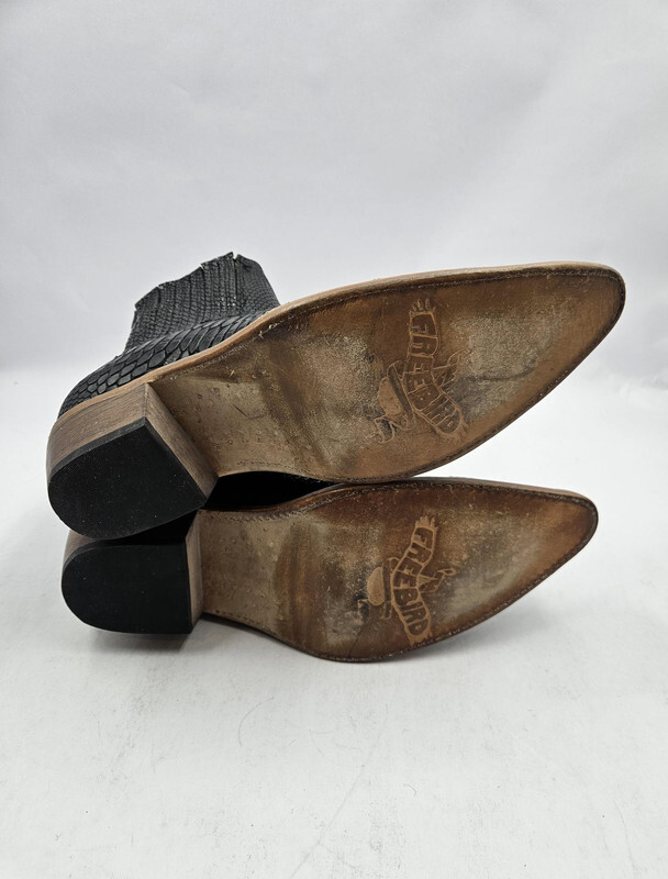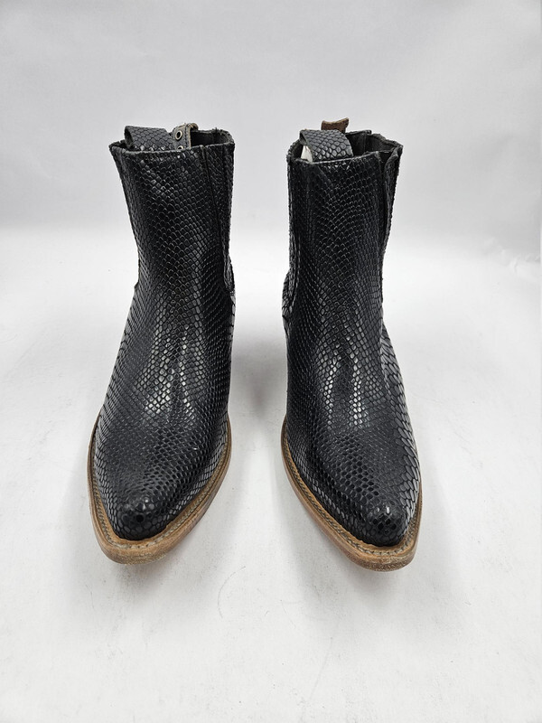Freebird Maeve Women's Black Snake Booties, US 10 UK 8, Black Leather This item is new in an original box as shown.