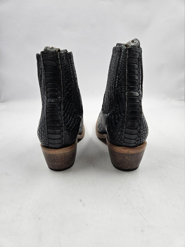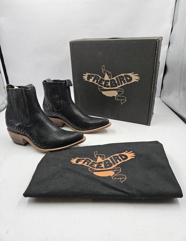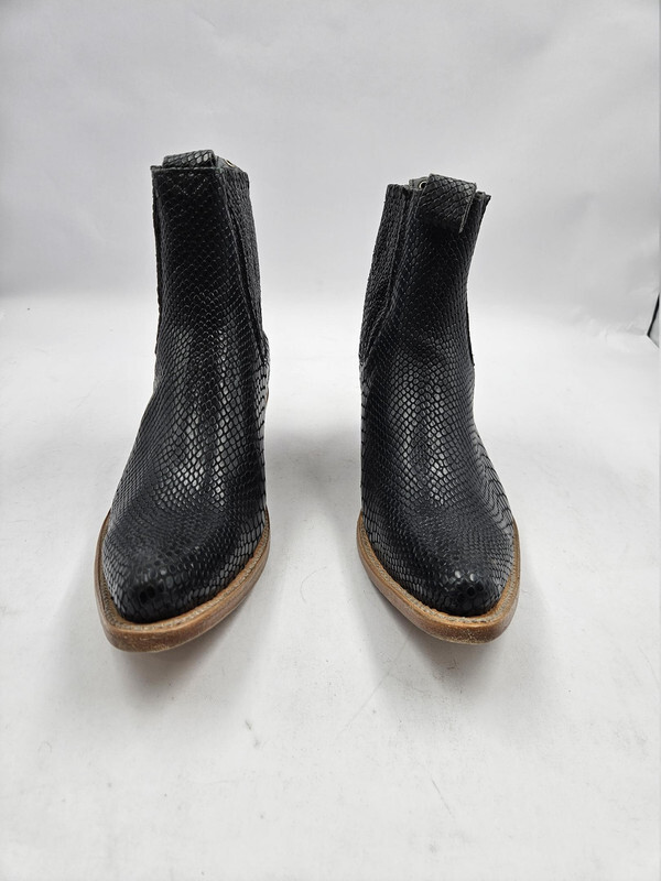 Freebird Maeve Women's Black Snake Booties, US 8 UK 6, Black Leather This item is new in an original box as shown.