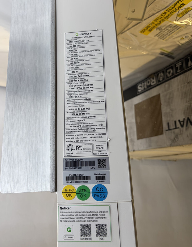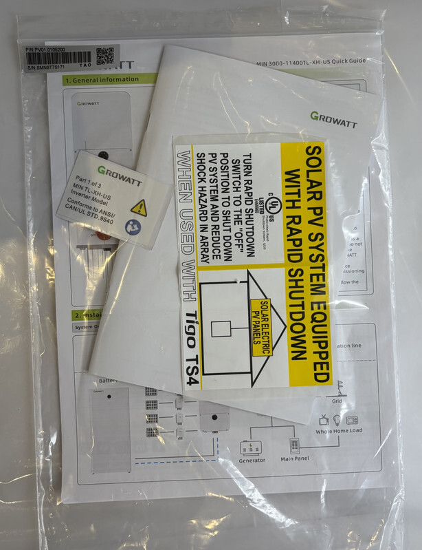 Growatt MIN 11400TL-XH-US Grid Support Hybrid Inverter 11.4K V3 This item is new in a freight worn box as shown.