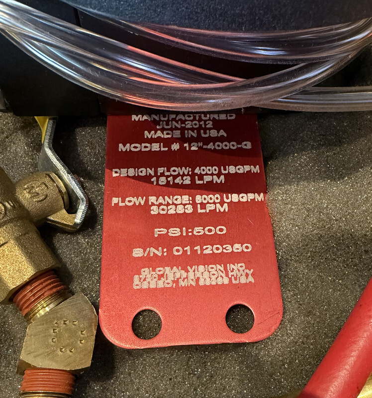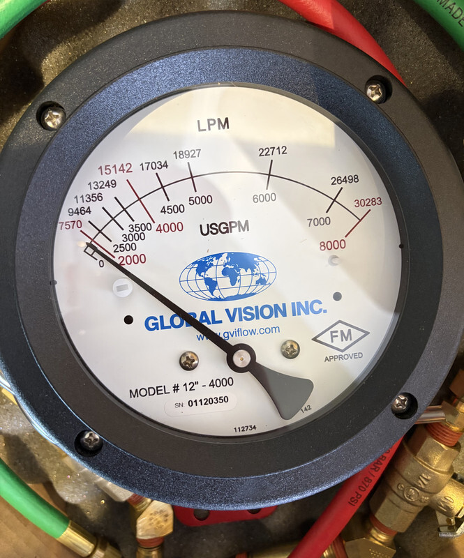 GVI 12"-4000-G Venturi Fire Pump Test Meter MAX W.P. 3000 PSI 142-0084 This item is new in and open, freight worn box as shown.