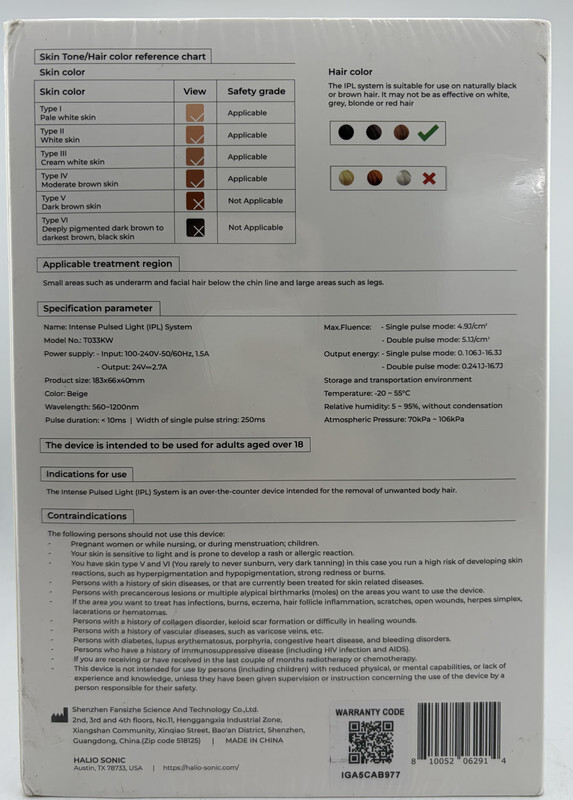 HALIO INTENSE PULSE LIGHT IPL SYSTEM BODY HAIR REMOVAL COLOR BEIGEThis item is sealed as shown.
