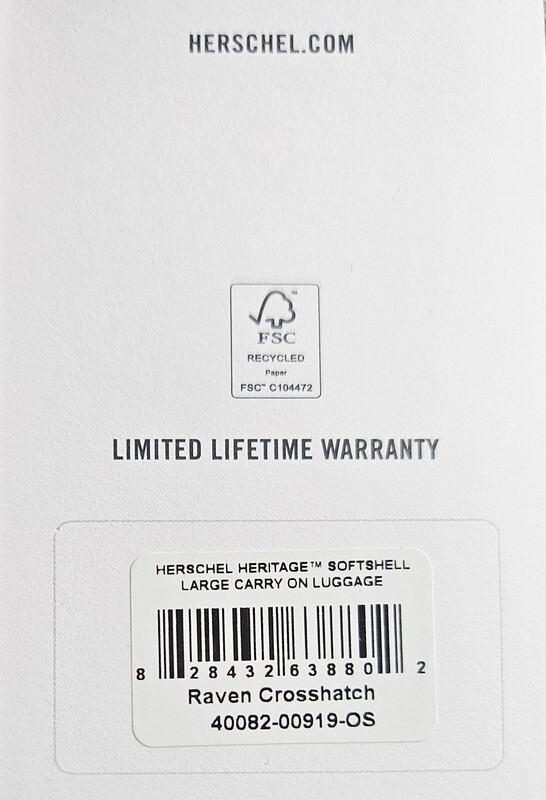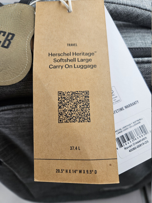 Herschel 40082 Heritage Softshell Luggage Large Carry On 37L Raven Crosshatch This item is new as shown.