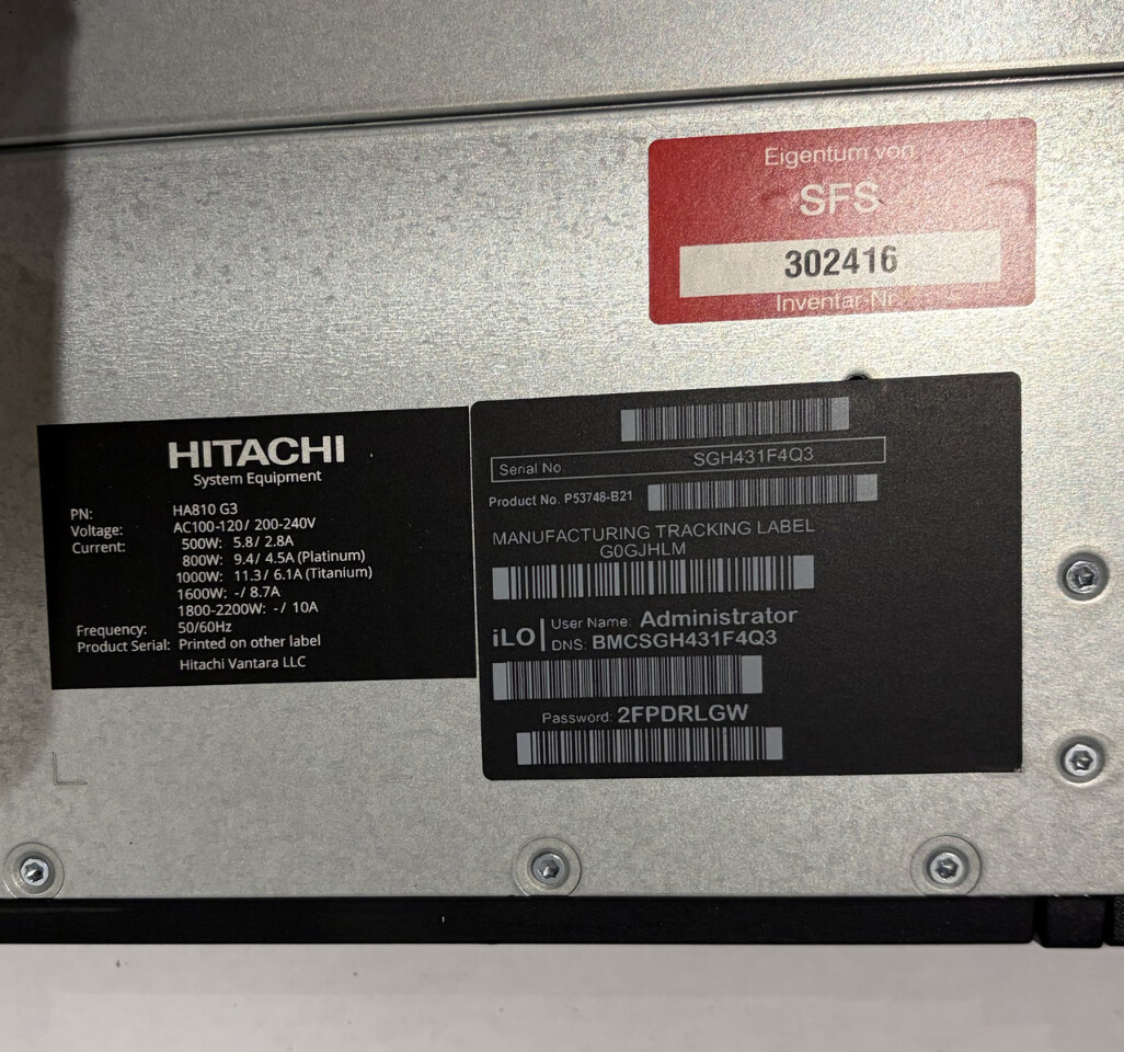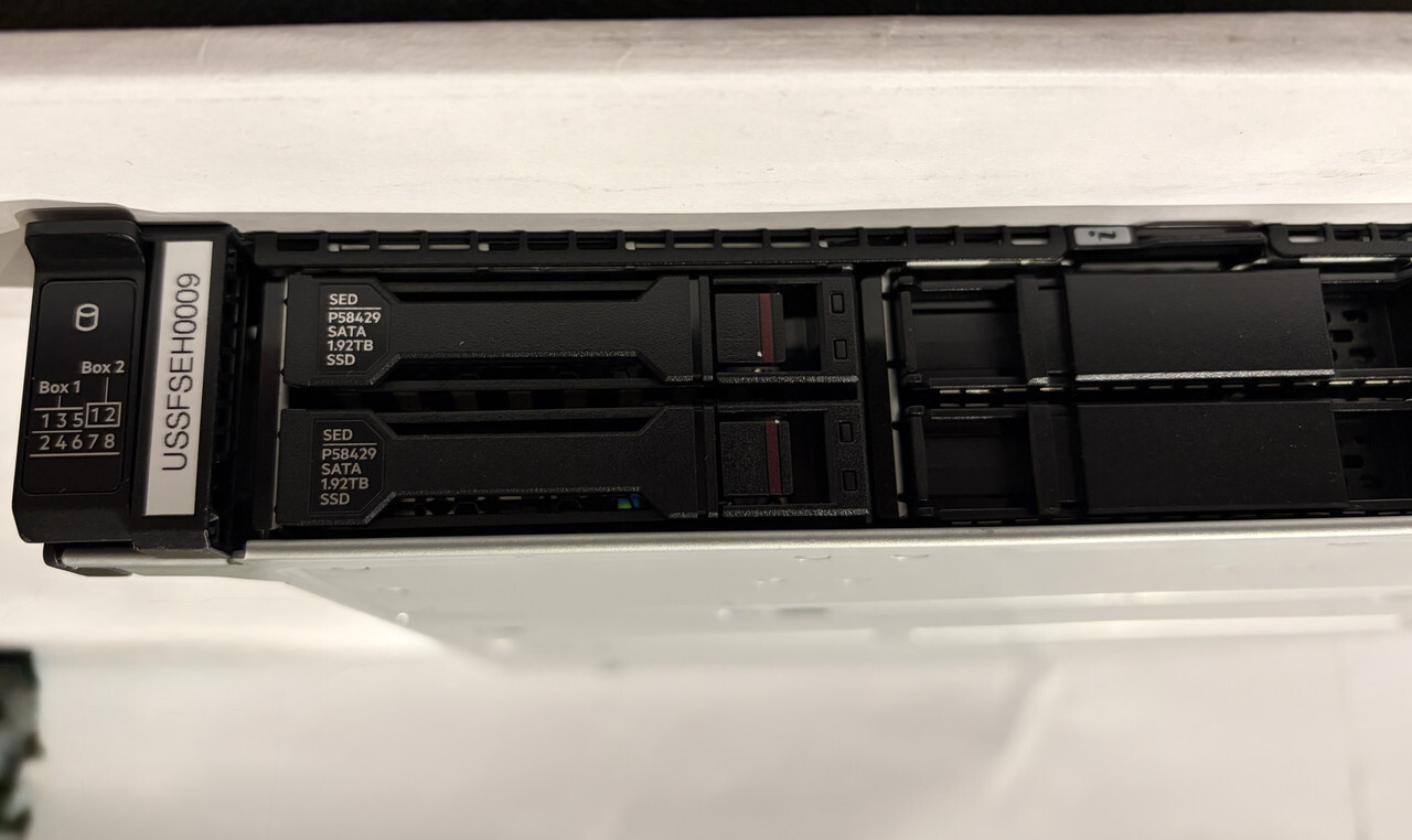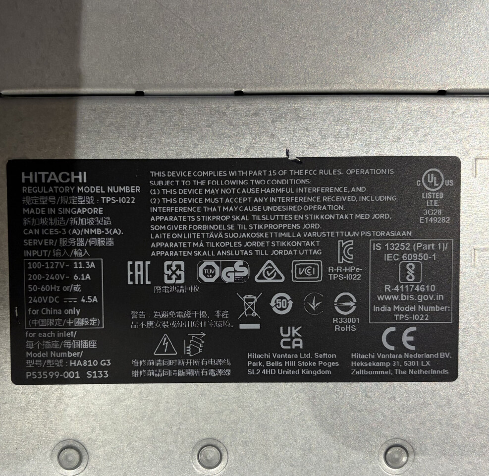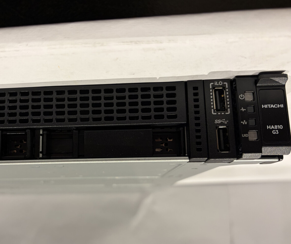 Hitachi HA810-G3 DL360 G11 SERVER P53748-B21 XEON 4510 128GB DDR5 2*1.92TB SSD This item is new in open box & comes with 1 Xeon 4510 12C CPU, 4* 32GB DDR5 EC8 RDIMM's (HMCG88AGBRA191N BB SK hynix modules), 2 * HPE 1.92TB SATA SSD drives (MTFDDAK1T9TGA 5400 PRO 2.5) and with dual 1000W PSU's as shown. Also includes accessories shown.