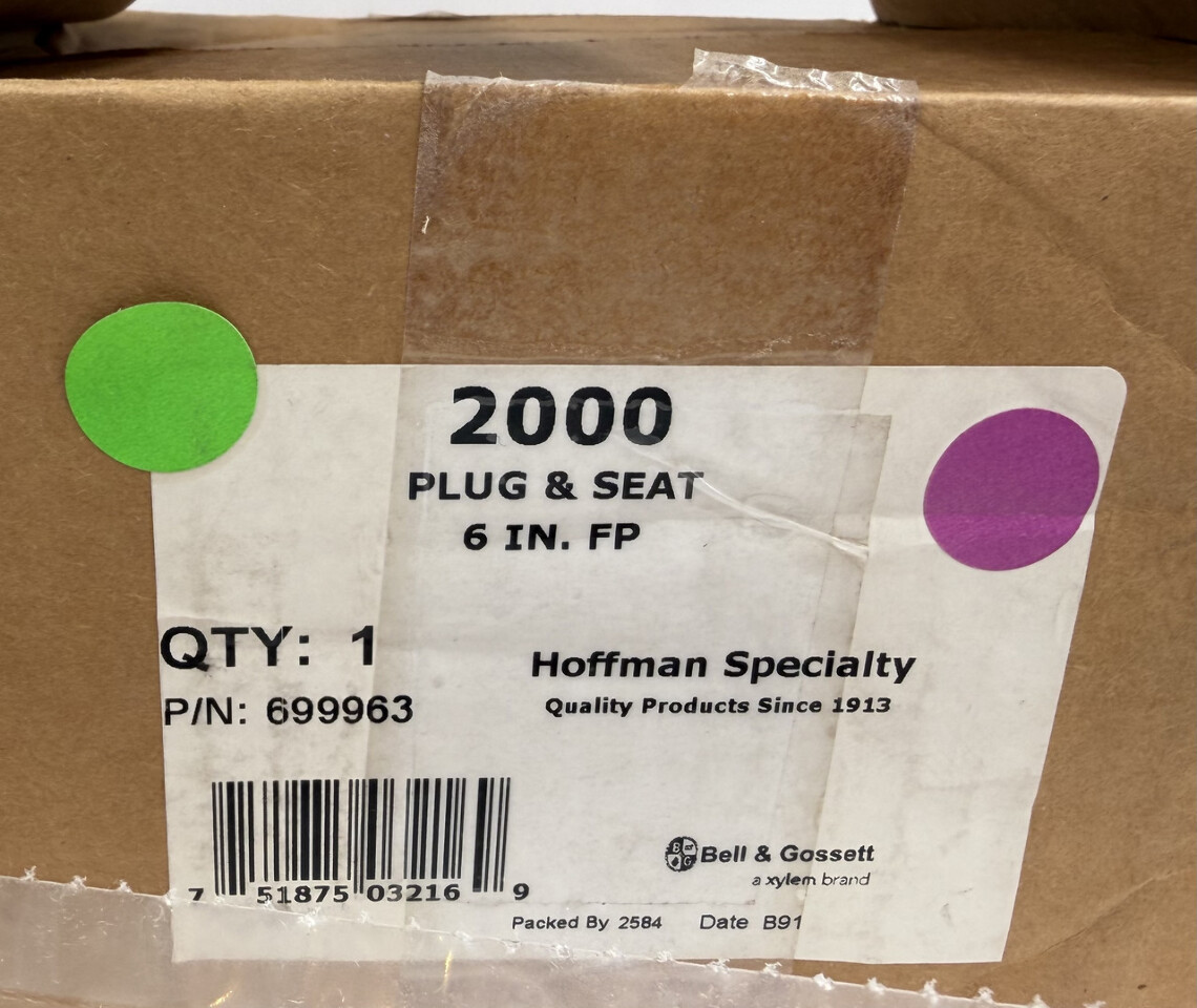 Hoffman Specialty 699963 2000 Series Plug and Seat 6in. FP Replacement Part This item is in new condition in the original, open box as shown