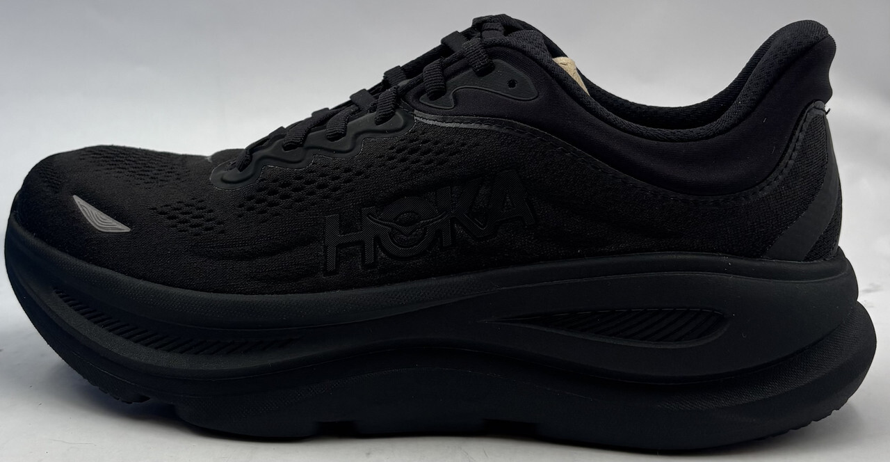 Hoka Bondi 9 1162011 BBLC Mens Size 8.5D Black/Black Mesh Cushioned 42 These shoes come new in the original box as shown.