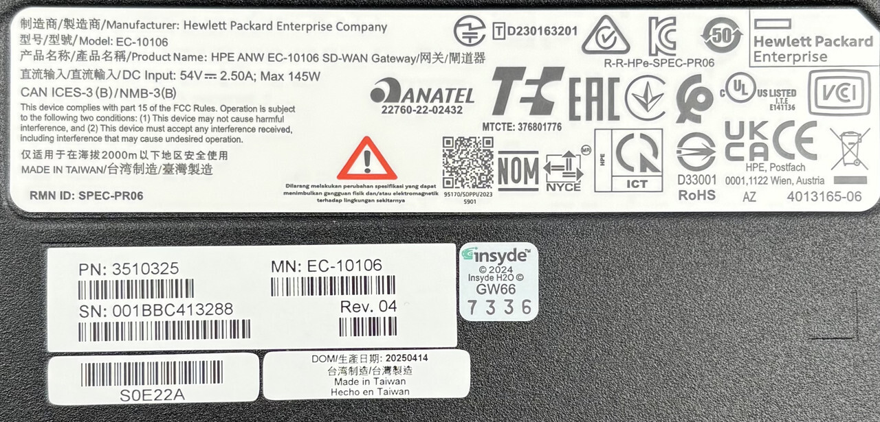 HPE Aruba Networking EdgeConnect 10106 EC-10106 SD Wan Gateway 3510325 This item is new as shown.