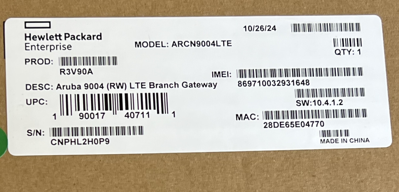 HPE Aruba R3V90A 9004 (RW) LTE Branch Gateway ARCN9004LTE This item is new as shown.