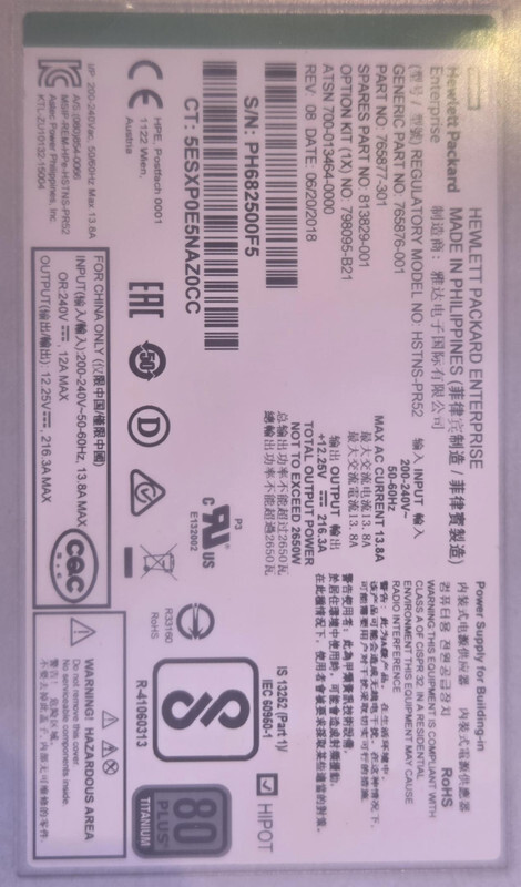 Hpe Hstns-pr52 765876-001 2650w 200-240VAC Titanium Power Supply This item is new as shown.
