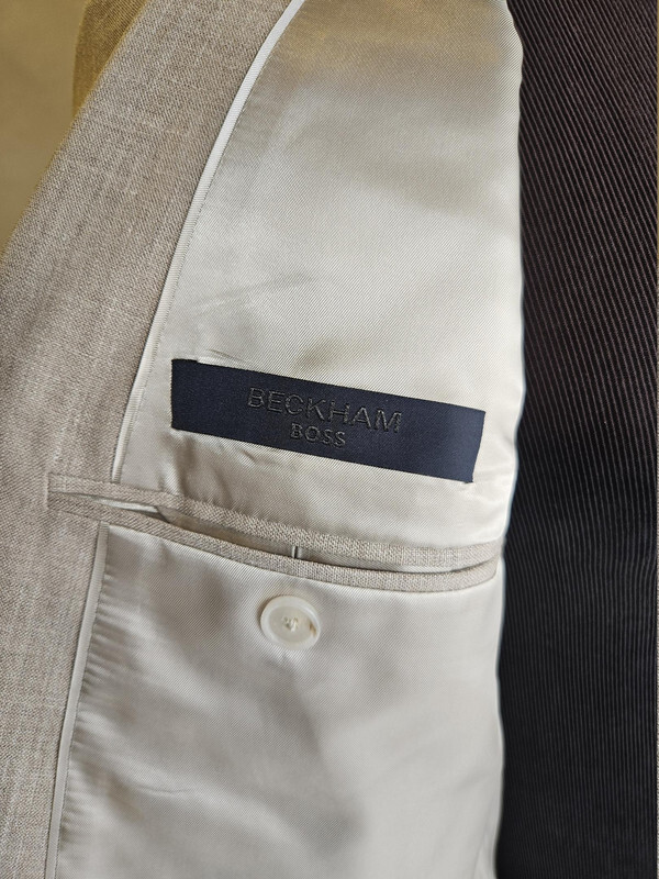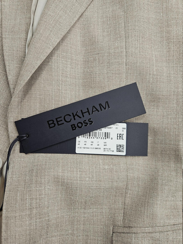 HUGO BOSS BECKHAM 50549196 TWO-PIECE SUIT VIRGIN WOOL SILK LINEN 36R LIGHT BEIGE This item is new as shown.