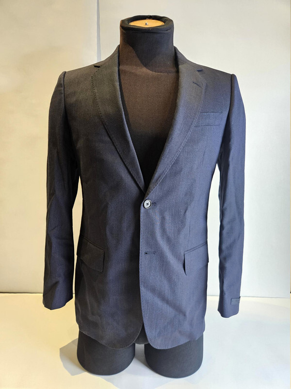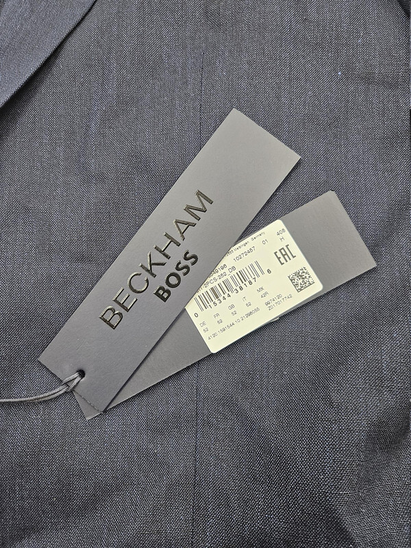 HUGO BOSS BECKHAM 50549196 TWO-PIECE SUIT VIRGIN WOOL SILK LINEN 42R DARK BLUE This item is new with tags as shown.