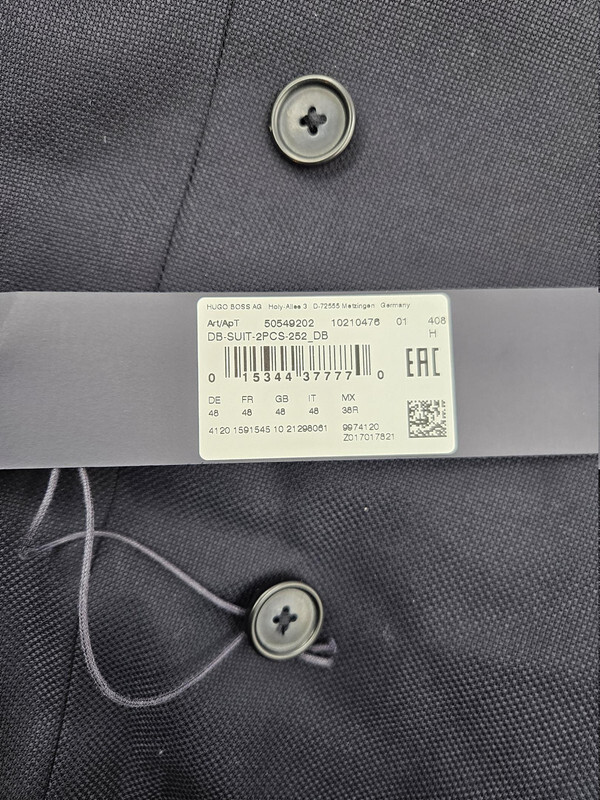 HUGO BOSS BECKHAM 50549202 Double-breasted suit in virgin wool 38R DARK BLUE This item is new with tags as shown.