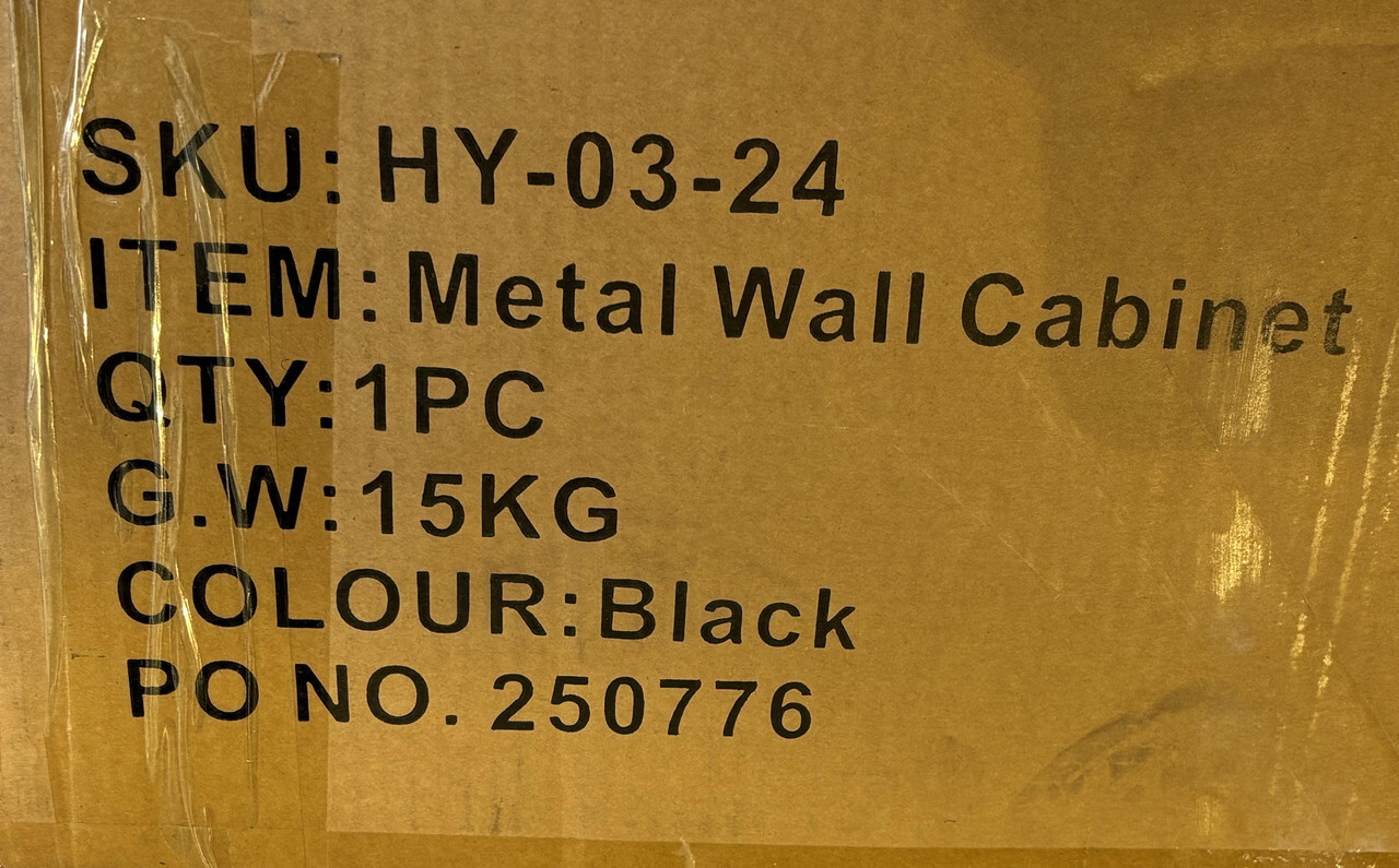 HY-03-24 Black Metal Wall Cabinet 250776 This item is used and comes in original box as shown.
