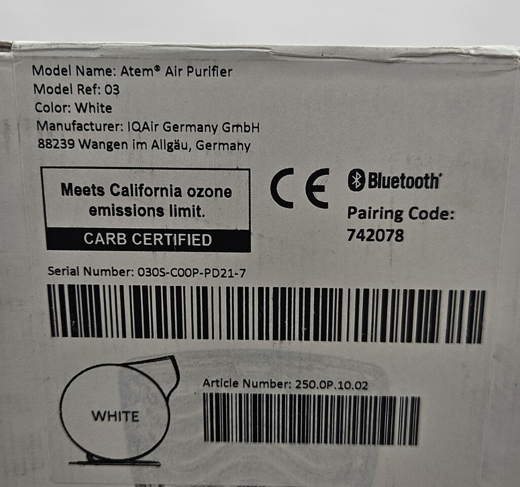 IQAir 250.0P.10.02 Atem Desk Personal Air Purifier This item is new in a selaed box as shown.