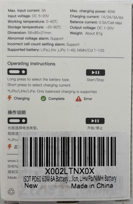 ISDT PD60 X002LTNX0X 60W Smart Charger This item is new and internally sealed as shown.
