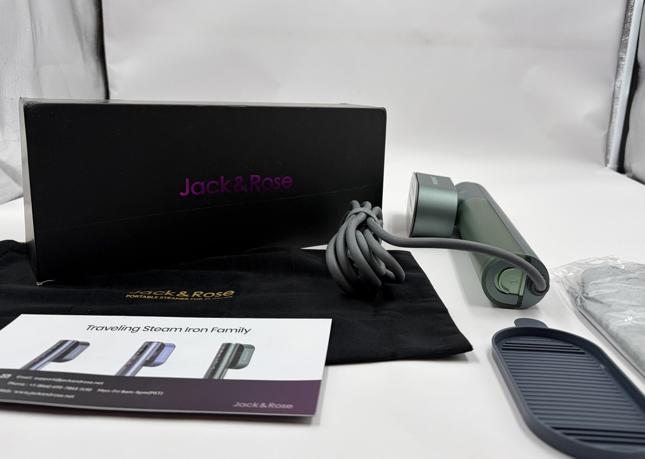 Jack and Rose Sc-001 Travel Steamer 1000W 100-240V Green Brand New This item is new/unused in an open box as shown. Included with steamer is 1 storage box, one instruction manual and 1 cue card.