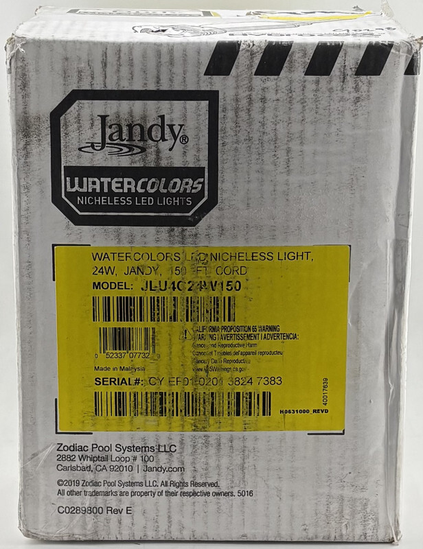 Jandy JLU4C24W150 Watercolors Led Nicheless Light 24W 150 Ft Cord This item is new and sealed in a freight worn box as shown.