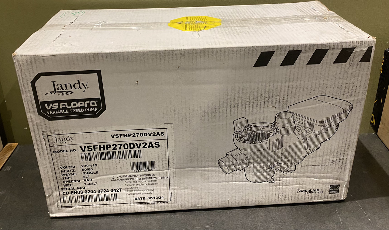 JANDY VSFHP270DV2AS POOL PUMP 2.7HP VS FLOPRO VARIABLE SPEED WITH SPEED CONTROLLER - AS IS / SCREEN BLEED! This item was new but has a damaged screen bleed and is being sold as is / for parts/repair.