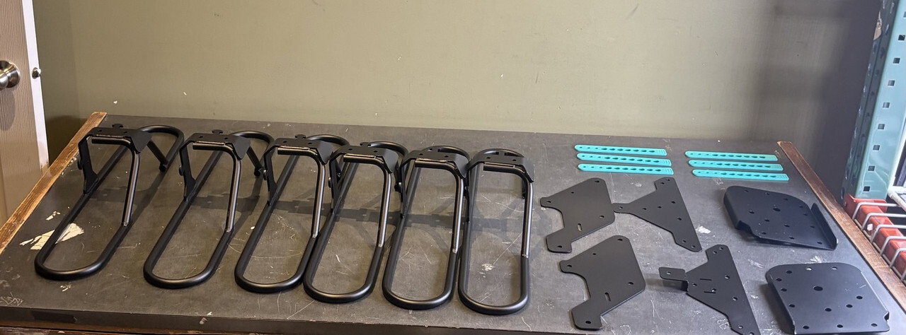 JB RACKS JB6B1 6 SLOT VERTICLE BIKE RACK PARTS SHOWN ONLY This item is new, but it is not complete. Includes only the parts shown (main bars & other parts not included).