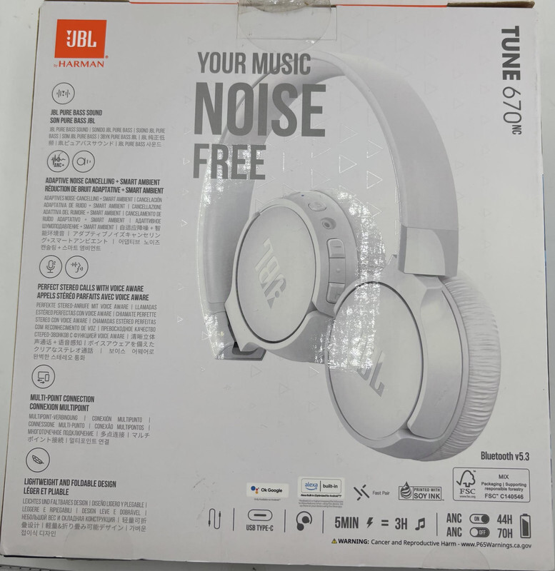 JBL Tune 670NC Wireless Bluetooth Headphones ANC Noise Cancelling White This item is new as shown.