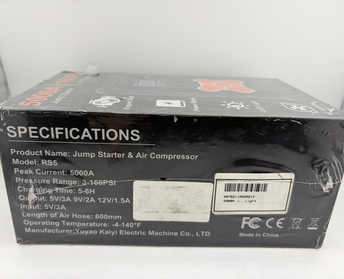 JUMP STARTER & AIR COMPRESSOR RS5 5000A 160 PSI POWER BANK PORTABLE This item is sealed in original manufactor packaging as shown