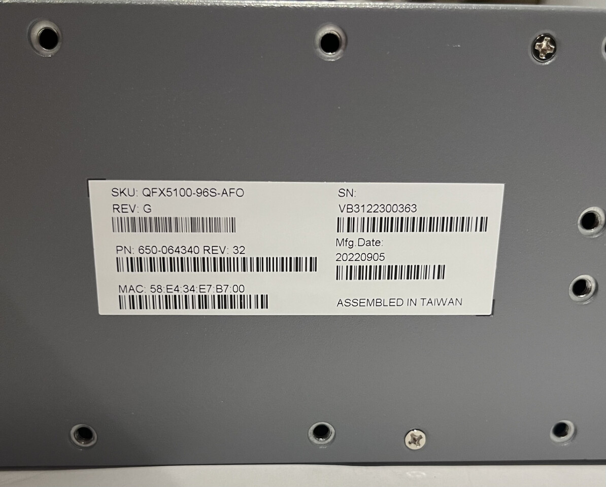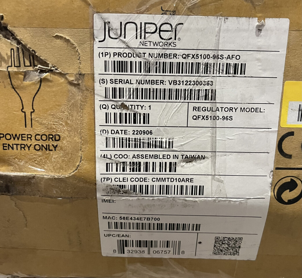 JUNIPER QFX5100-96S-AFO ETHERNET SWITCH This item is new with accompanying accessories in a freight worn box as shown.