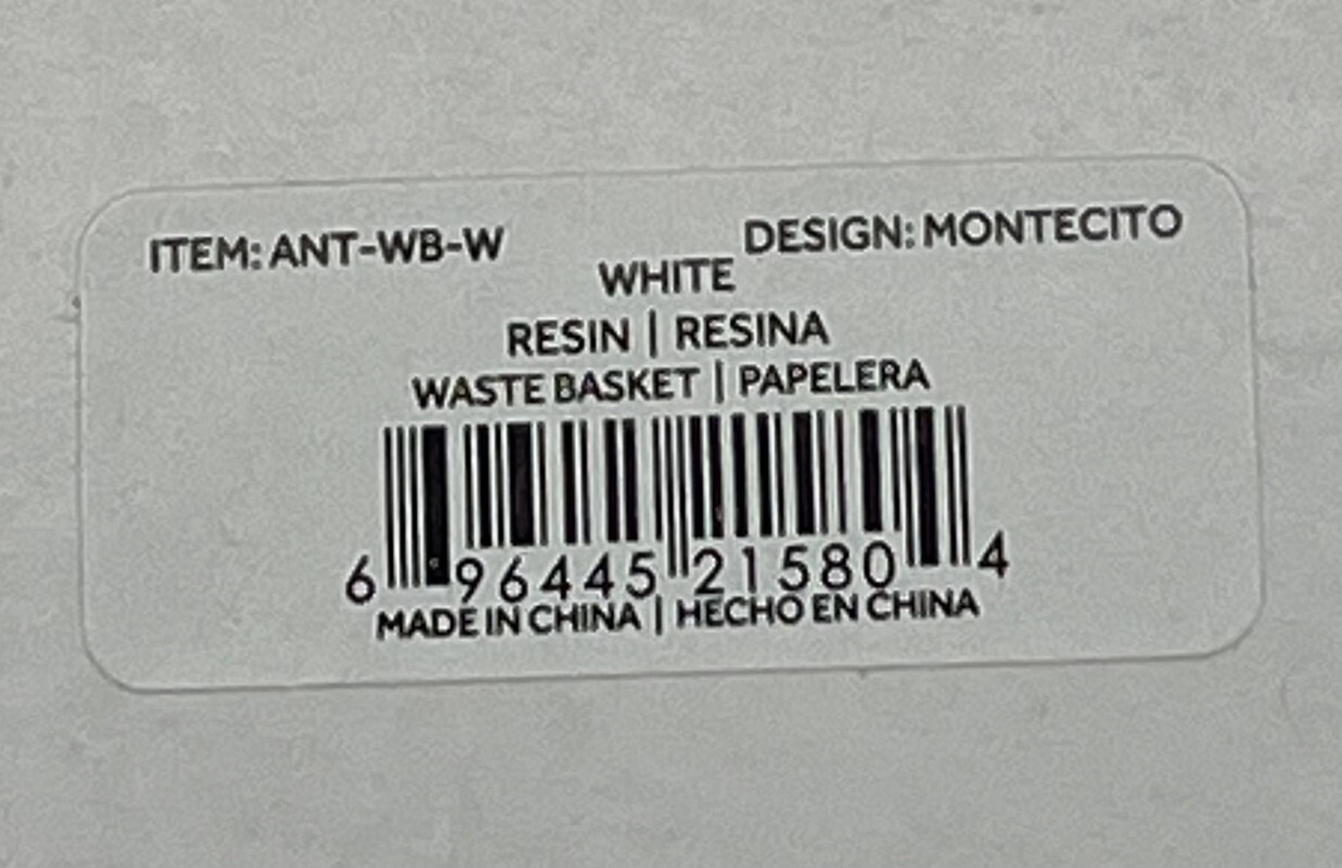 KASSATEX NEW YORK MONTECITO ANT-WB-W WHITE RESIN WASTE BASKET This item is new as shown.