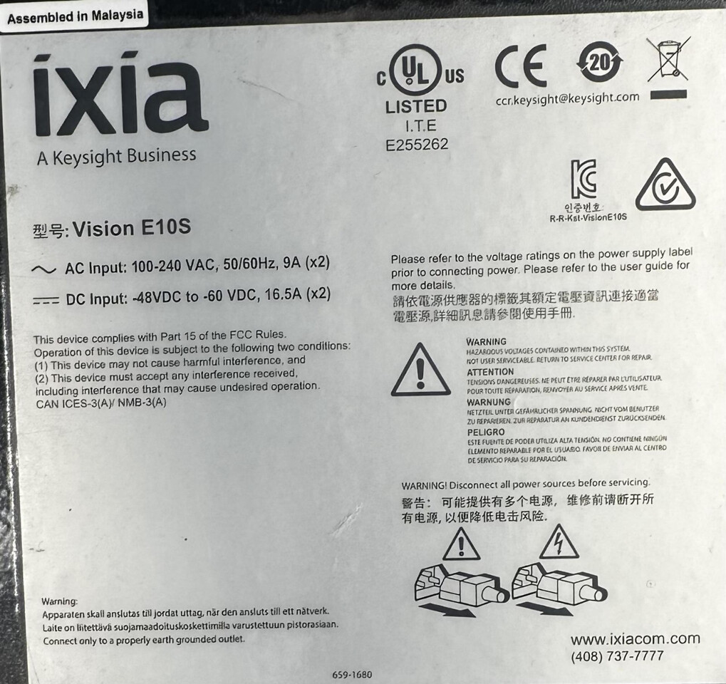 Keysight Vision E10s Ixia Edge 10s Network Packet Broker Appliance This item is untested & comes as shown.